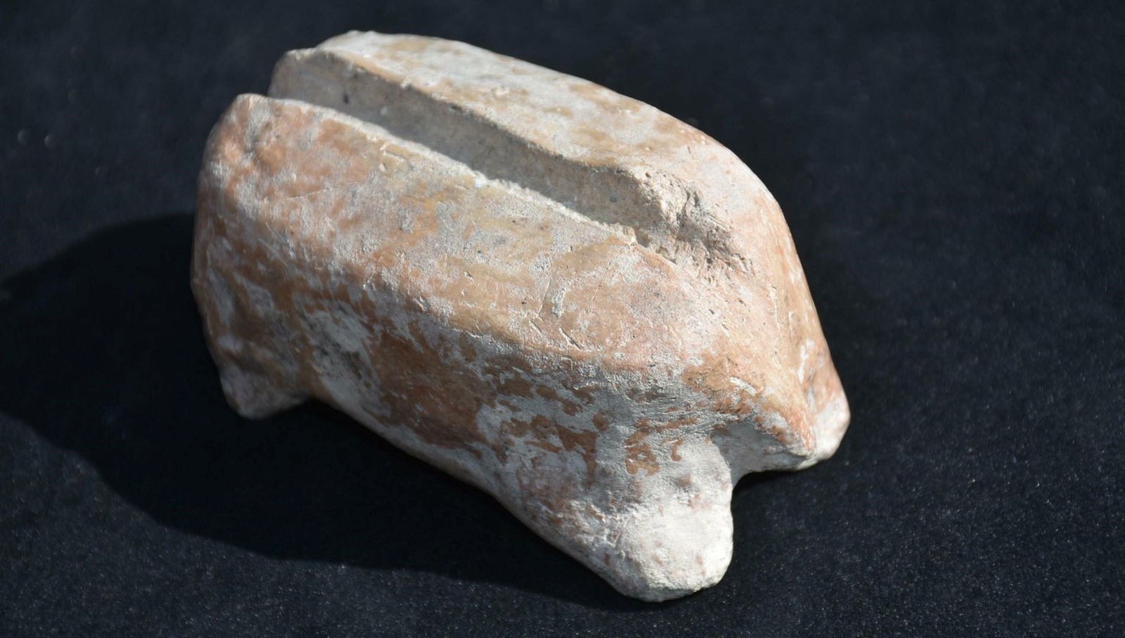 Ulucak Höyüğü’nün İzmir’in birinci yerleşim yeri olduğunu vurgulayan Prof. Dr. Çevik, “Ulucak, Batı Anadolu’nun en eski yerleşimlerinden birisi. Burada günümüzden 8 bin yıl öncesinde kil nesnelerin artığını görüyoruz. Bu buluntumuz, aslında kil gereçten yapılmış eşsiz bir eser. Sap düzeltici ile ahşabı sürterek yuvarlak hale getirilmesi sağlanıyor ya da kemik iğnelerinin de tekrar sürterek pürüzsüz hale getirilmesi sağlıyor. Fonksiyonel olarak sap düzeltici. Bunu özel kılan hem fonksiyonel bir obje hem de birebir vakitte hayvan biçiminde yapılmış bir eser. Büyükbaş hayvana benzetilmiş, kuyruk kısmını görebiliyoruz. Sığır biçiminde şekillendirildiğini görüyoruz. Hem fonksiyon hem sembolizm bir ortaya getirilmiş. 7 bin 700 yıl öncesine dayanıyor” diye konuştu.
