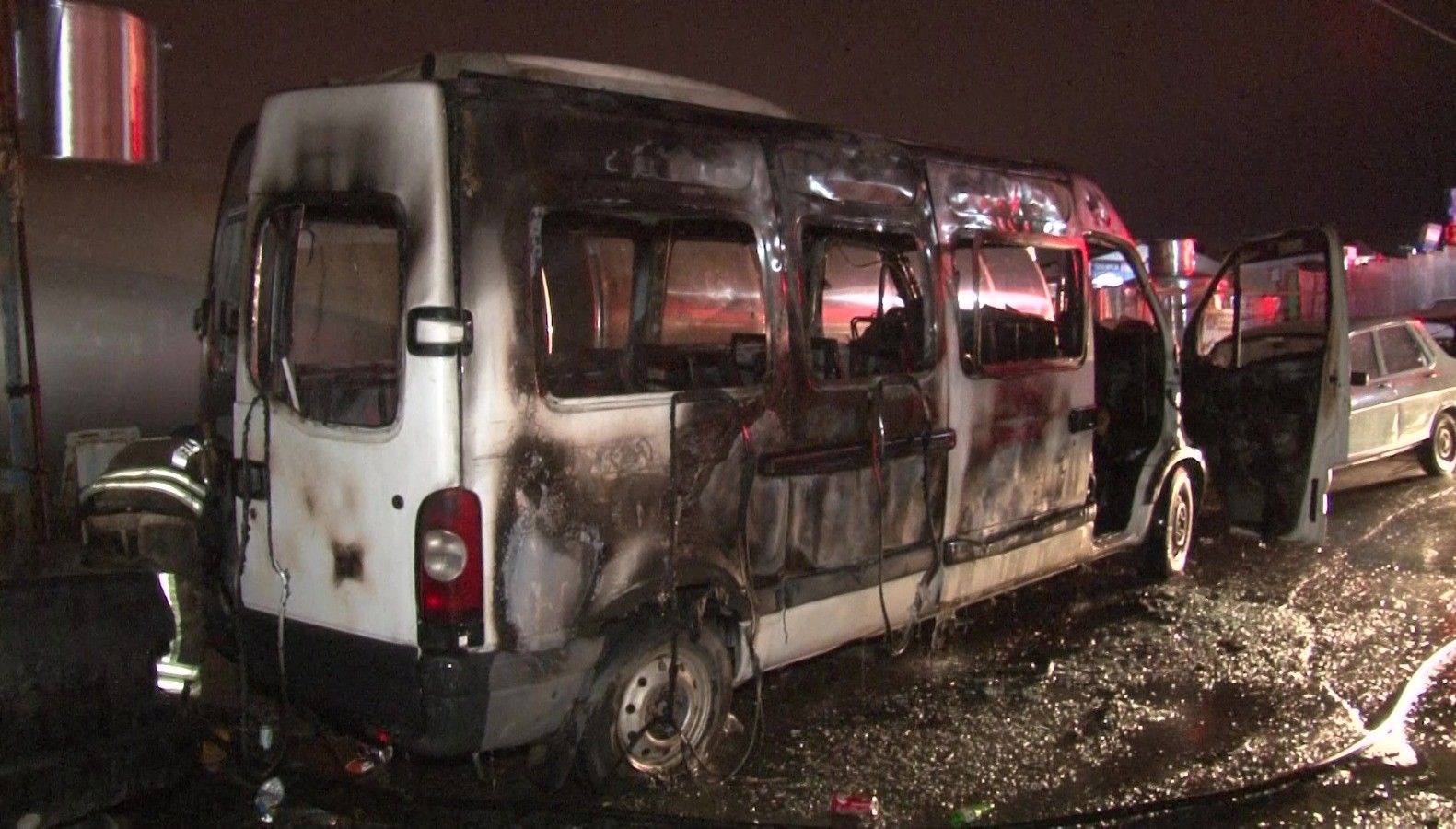 Aşağı Dudullu, Narlıkuyu Mahallesi’nde teze nazaran alkol alan iki genç servis aracının içinde ateş yaktı.