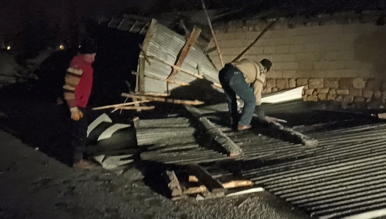Ev sahibi, fırtına olduğu sırada bir ses duyduklarını ve o sesle birlikte elektriklerin gittiğini belirterek, “Bu nedenle dışarı çıkmadık. Yoldan geçen vatandaşların haber vermesiyle çatıları yoldan kaldırdık” dedi.