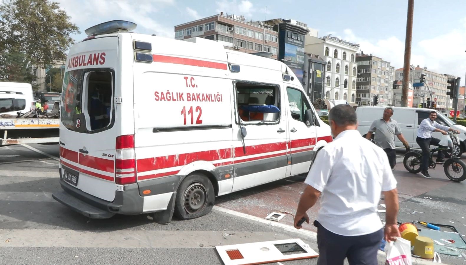 Hasta ağır biçimde yaralanırken ambulansın önündeki iki sıhhat işçisi de yaralandı.