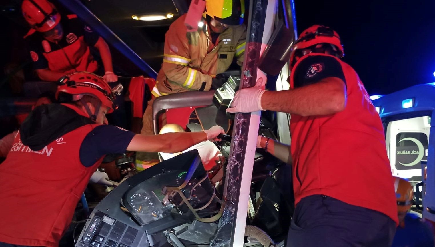 Sürücüler ile otobüsteki muavin, yedek sürücü ve 40 yolcunun yaralandığı kaza yerine 112 Acil Sıhhat, polis ve jandarma grupları sevk edildi.
