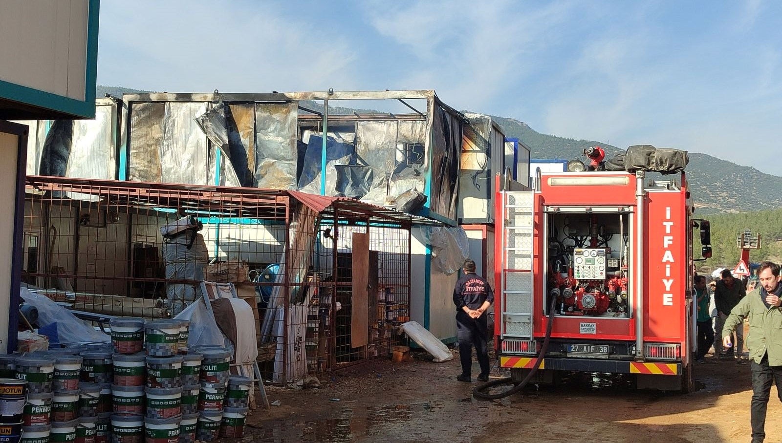 Gaziantep’te yangın, depremzede vatandaşlar için üretimi devam eden konutlarda çalışan personellerin kaldığı konteynerlerde çıktı.